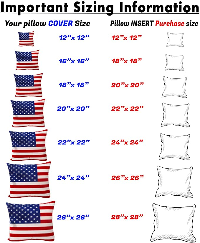 - Measurements are seam to seam - After filling, the pillow will decrease about 10% - 15% in size; Order two inches up!