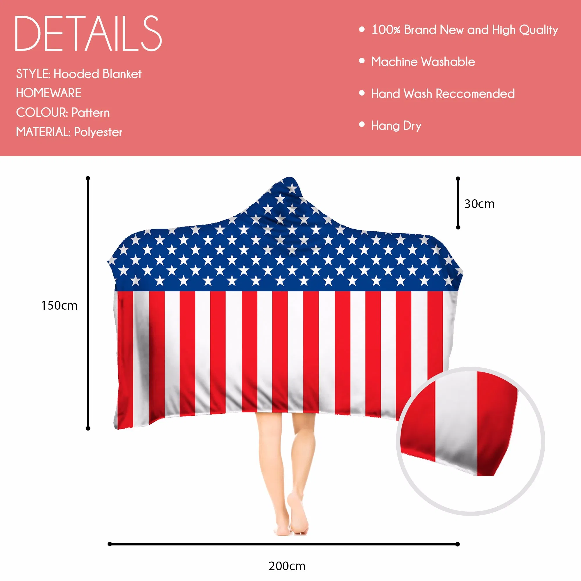 Hooded Adult Sweatshirt USA flag with Berber Fleece thick Hoodie Blanket Hooded Adult Sweatshirt USA flag with Berber Fleece thick Hoodie Blanket